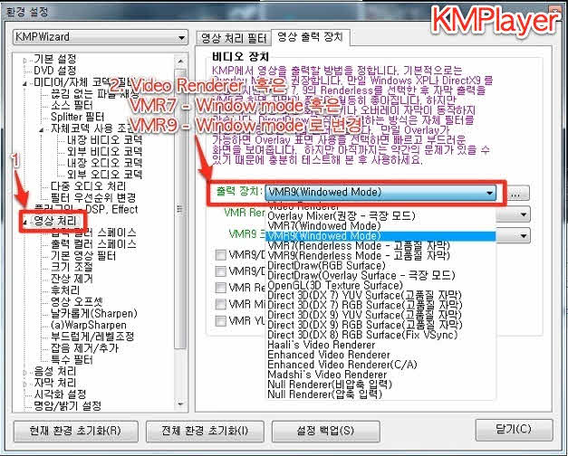 곰플레이어,KMPlayer,다음 팟플레이어 같은 경우 화면출력에 Overlay Mixer를 사용할 경우, 캡쳐가 되지 않으므로 해당 Player의 Overlay 기능을 꺼야 합니다. Player에서 Overlay 기능을 끄는 방법은 다음 그림을 참고하세요.